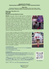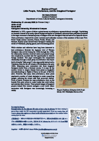 The International Japanese Studies Group in the Institute for Humanities Research at Kanagawa University is pleased to announce its spring talk schedule as well as its tentative autumn schedule.