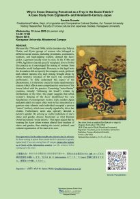 ‐講師:Daniele Durante(Postdoctoral Fellow, Dept. of Linguistics and Comparative Cultural Studies, Ca’Foscari University Visiting Researcher, Faculty of Cross-Cultural and Japanese Studies, Kanagawa University)
